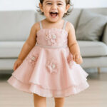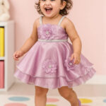 Party Wear Frock for Girls with Floral Applique